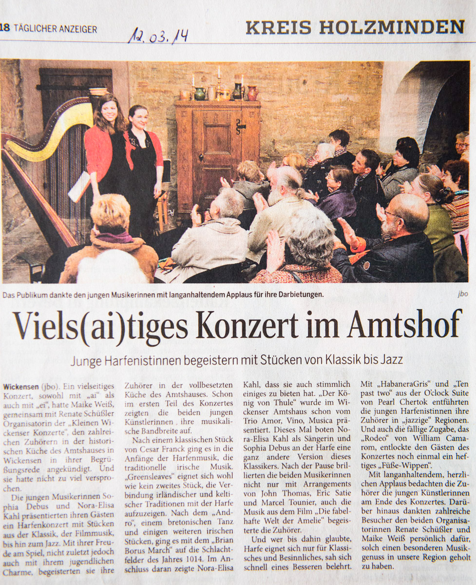 Für das nächste Jahr werden Veranstaltungen auch wieder für Wickensen geplant, in der Hoffnung, dass es dann möglich sein wird, in der historischen Küche des Amtshauses zu musizieren.