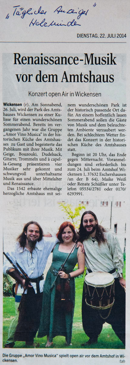 Für das nächste Jahr werden Veranstaltungen auch wieder für Wickensen geplant, in der Hoffnung, dass es dann möglich sein wird, in der historischen Küche des Amtshauses zu musizieren.