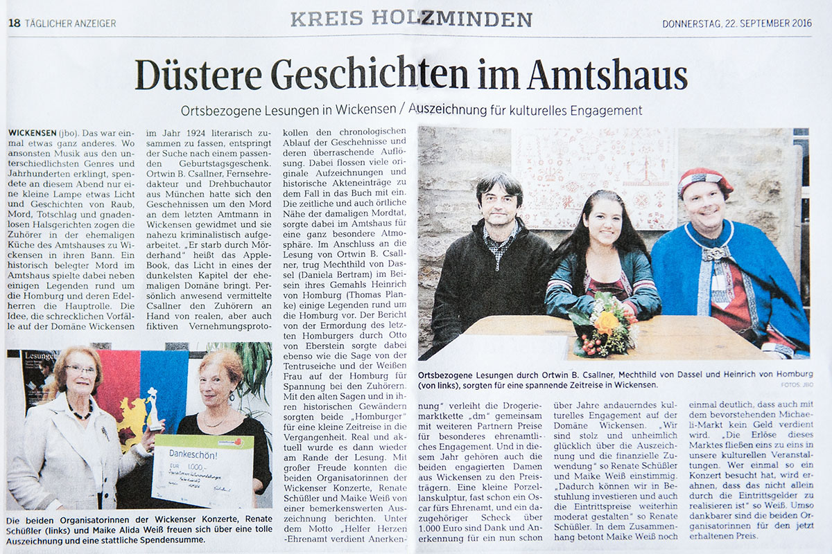 17. September - Lesungen über das alte Amt Wickensen und die Homburg