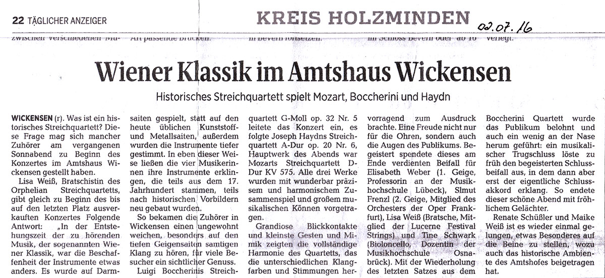 25. Juni - Konzert mit dem „Orphelian Streichquartett“