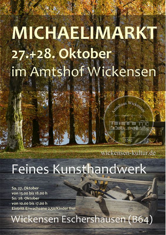 "Dieses ist der 5. Michaelimarkt, der schon fast traditionell geworden ist. Bewußt wurde er ans Ende des Oktobers gelegt, um näher an die Adventszeit zu rücken. In den vergangenen Jahren war der Wunsch nach einem Weihnachtsmarkt immer häufiger geäußert worden, so werden jetzt aber Tradition und Advent zusammengefügt. Gezeigt werden wieder nur ausgesuchte handwerklich hochwertige Dinge. Es gibt die Bücherstube mit einer gemütlichen Ecke zum Lesen und Stöbern, das kleine Café, draußen einen Bratwurststand und für die Kinder zum Austoben das Torwandschießen und Dosenwerfen.