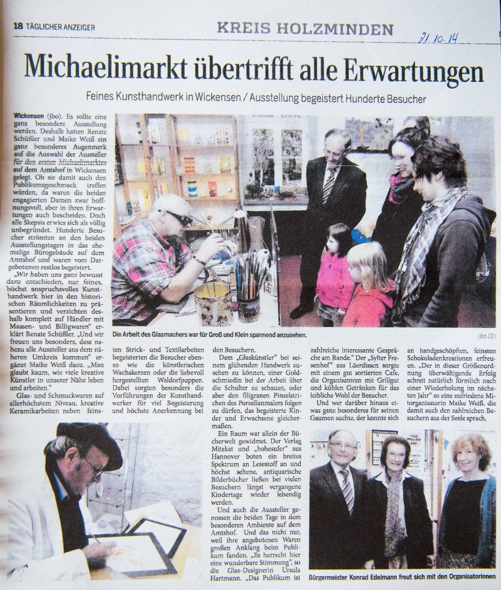 Auf dem Michaelimarkt wurden neben zahlreichen Ständen mit feinem Kunsthandwerk auch Vorführungen und Sachen zum Selbermachen für Groß und Klein angeboten. Auch für das leibliche Wohl war gesorgt.