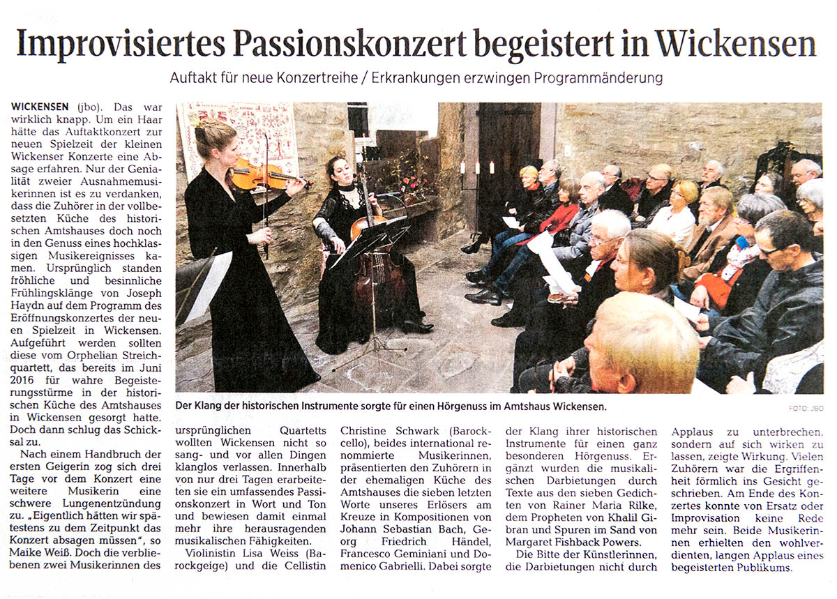Für das nächste Jahr werden Veranstaltungen auch wieder für Wickensen geplant, in der Hoffnung, dass es dann möglich sein wird, in der historischen Küche des Amtshauses zu musizieren.