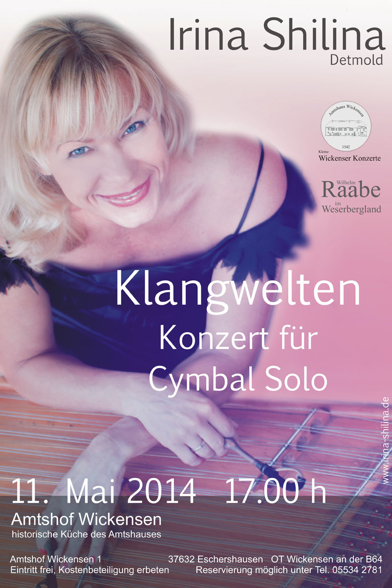 Im Rahmen der Wilhelm Raabe Austellung auf dem Amtshof Wickensen, fand das Konzert für Cymbal Solo Klangwelten mit Irina Shilina aus Detmold statt.